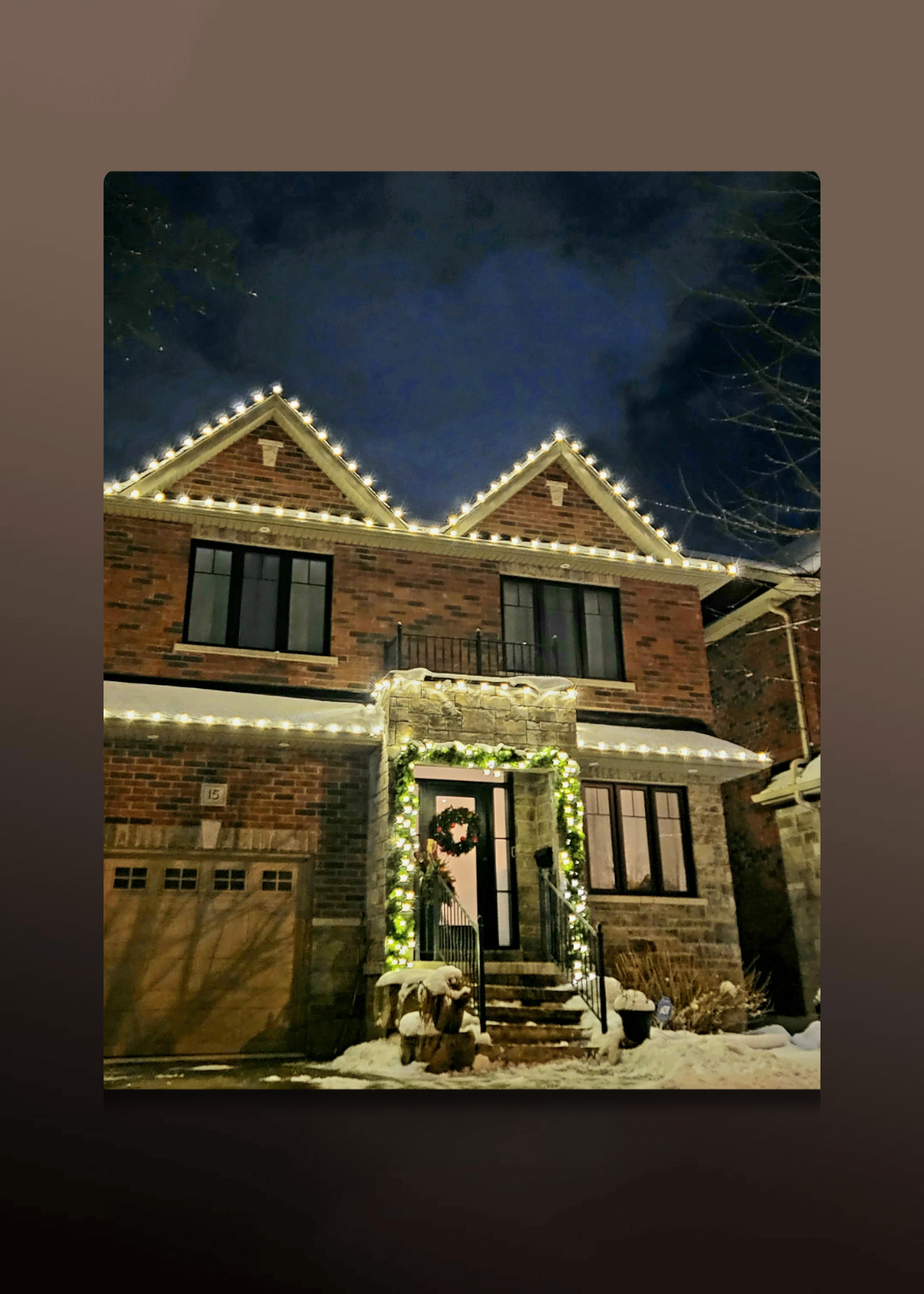 Our professional installation ensures your holiday display is secure, stunning, and built to withstand Toronto’s winter weather. From rooflines to tree lighting, we provide efficient, safe service that enhances your home without disruption.